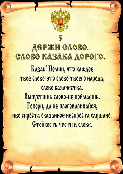 5. ДЕРЖИ слово. СЛОВО КАЗАКА ДОРОГО
